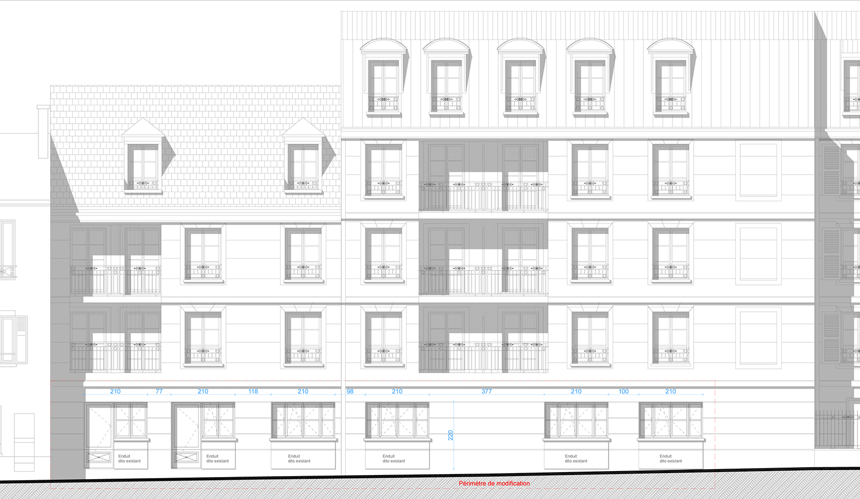 Transformation d’un local commercial à rez-de-chaussée en deux studios et deux F2.
