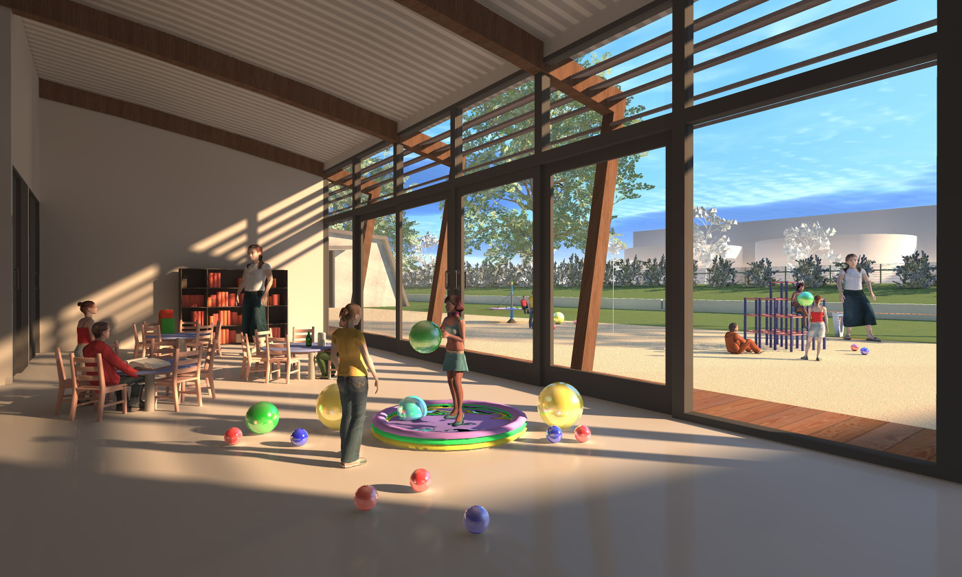 Le parc des Tulipes Sud, dans lequel est construite la crèche, se trouve à proximité de l’aéroport du Bourget et est bordé par des voies de dessertes très bruyantes.